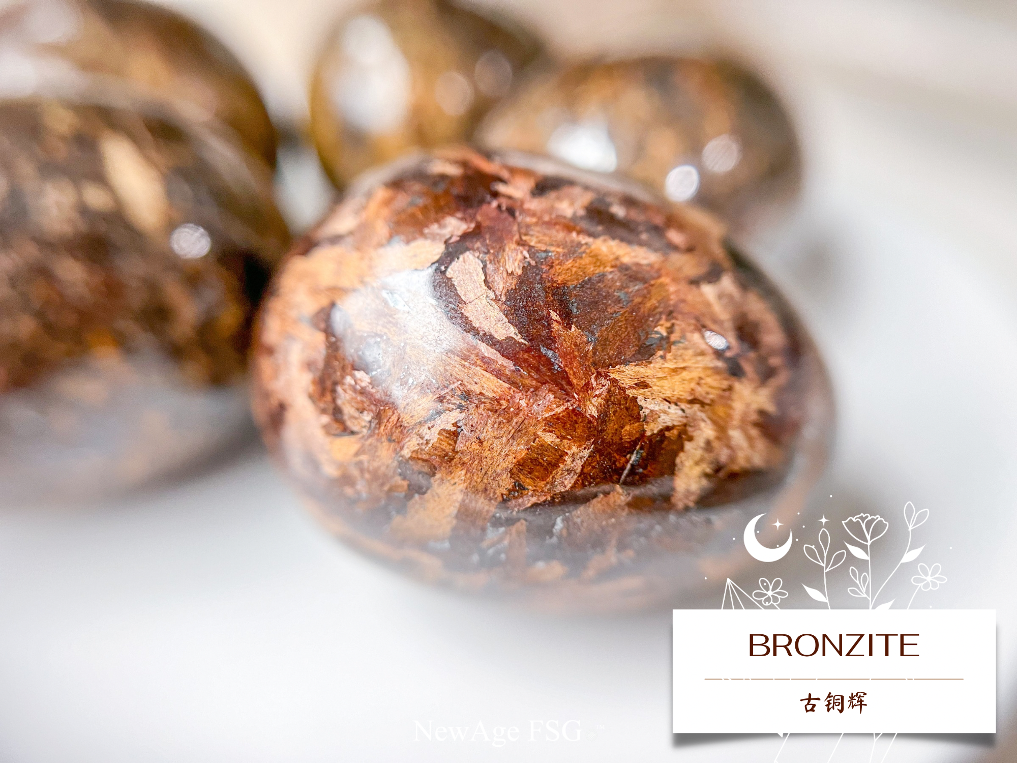 Bronzite is ideal for removing pain and chronic exhaustion. It aids in the assimilation of iron and reduces cramps. Bronzite supports the nervous system and helps with any nerve or muscle disorder.